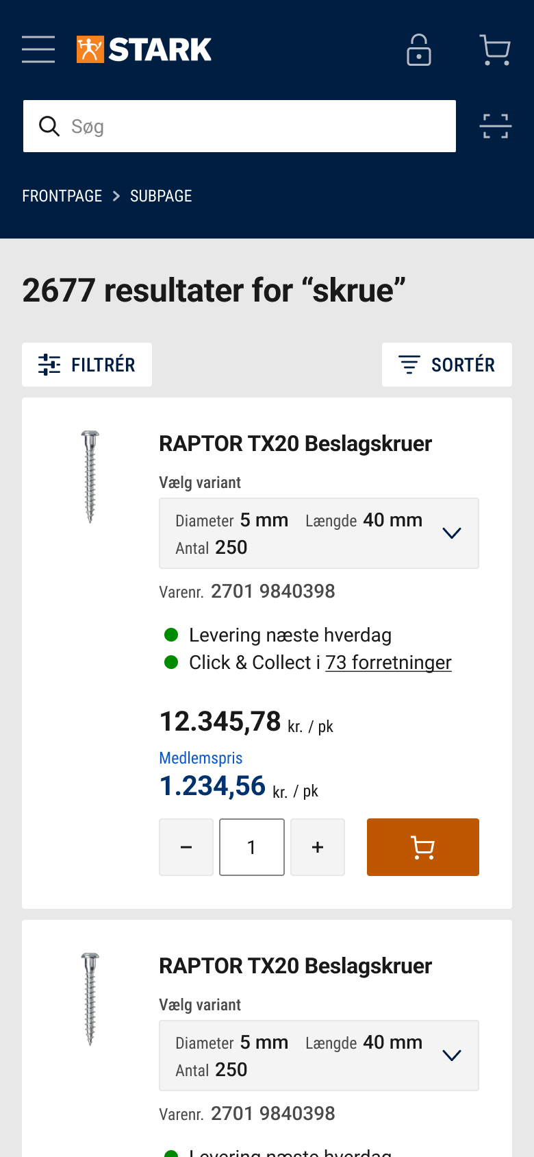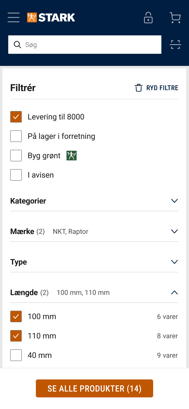 For keeping my portfolio up to date, I decided to redesign two core pages of the STARK.dk website: Search results and filter overviews. As part of the exercise, I also tweaked core navigation components.