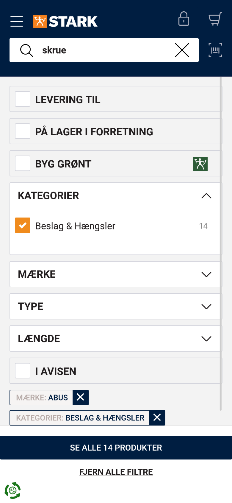 When reviewing a website, I typically start with a core component such as navigation. The navigation on STARK.dk is interesting for two reasons: 1) Navigation being a vital component on a commerce site, heavily influencing conversion rates. 2) The complexity of the different functionality (scan barcode, dynamic breadcrumbs and delivery selection).
